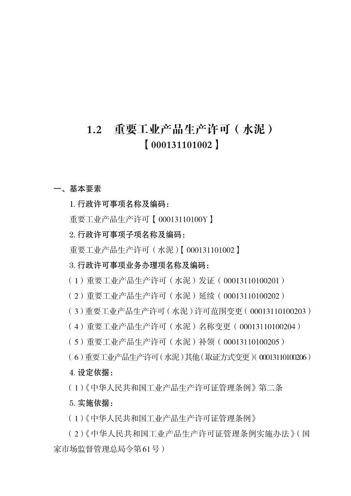 2. 重要工业产品生产许可(水泥)