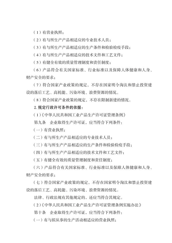《中华人民共和国工业产品生产许可证管理条例》《中华人民共和国食