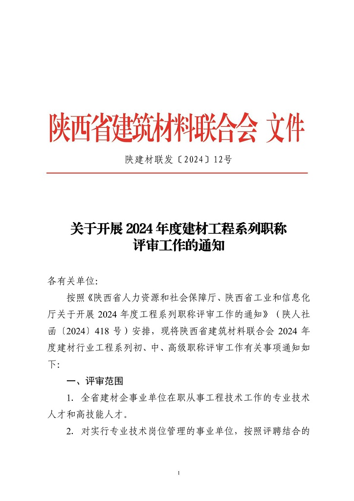 关于开展 2024年度建材工程系列职称评审工作的通知