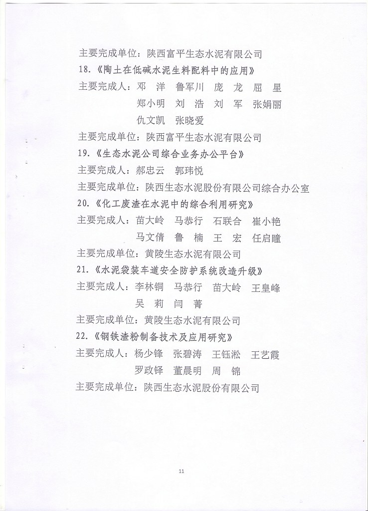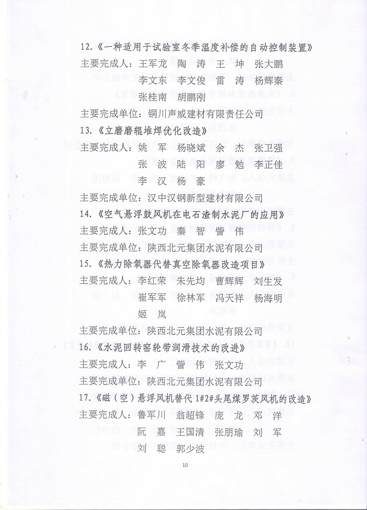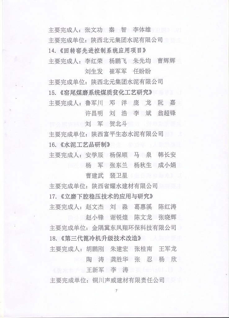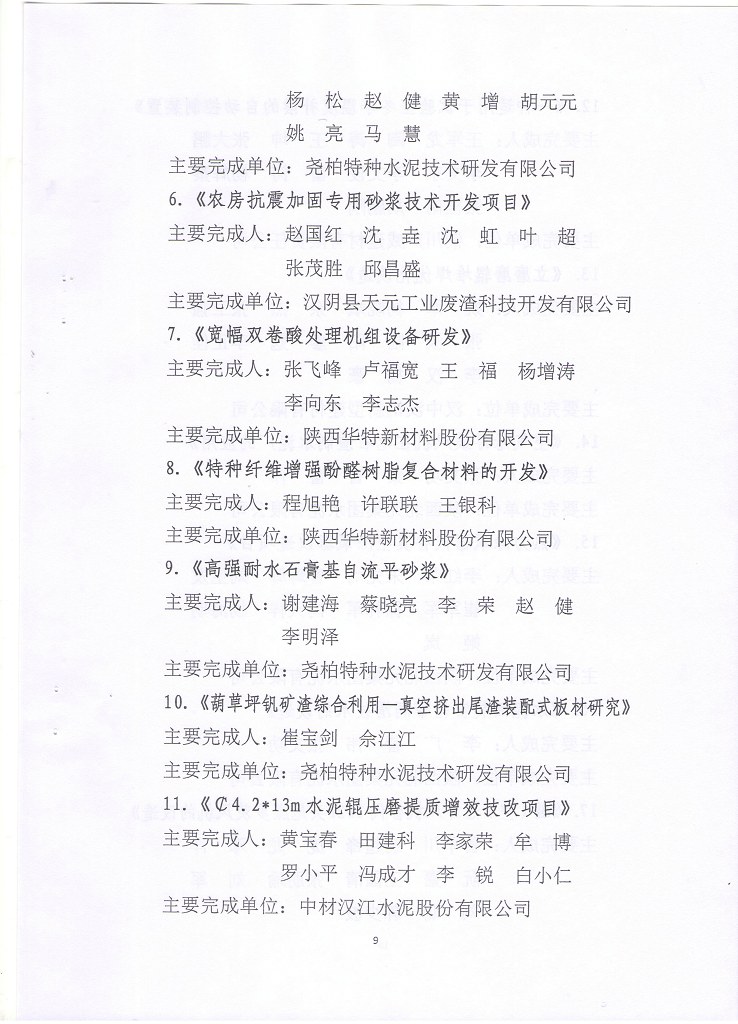 关于2021年《西矿环保杯》陕西省建材行业技术革新奖获奖项目的表彰决定